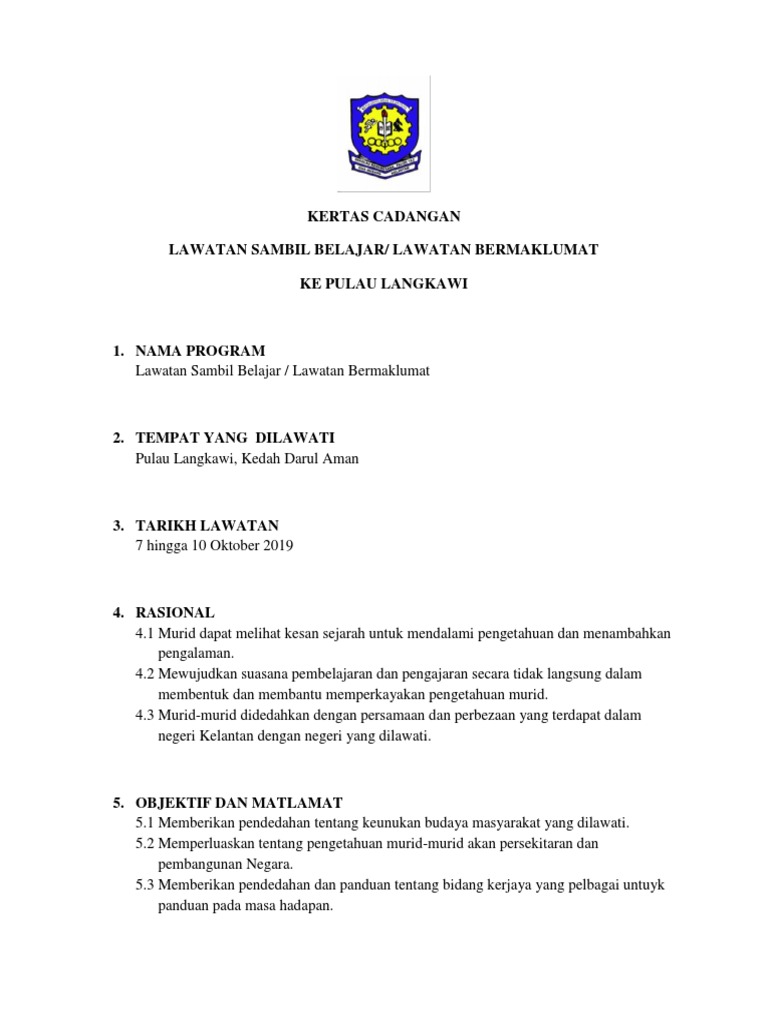 Contoh Kertas Kerja Lawatan Ke Langkawi Pdf